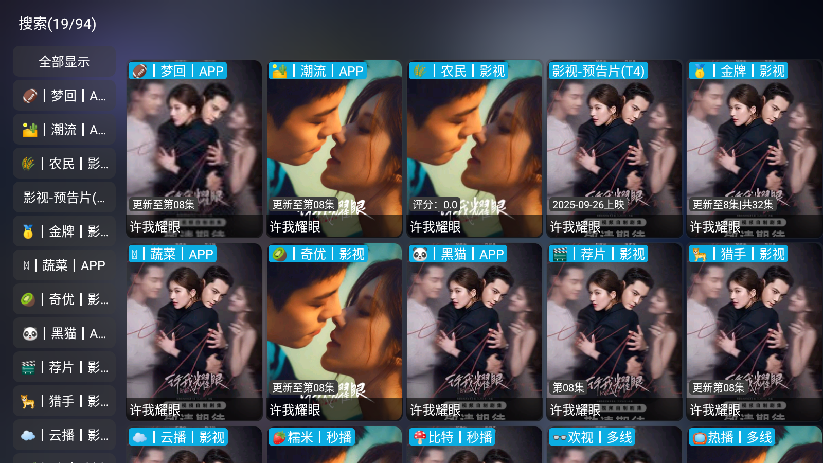 2、可以通过搜索或者排行榜找到自己想看的内容,任意点击一个播放源。
