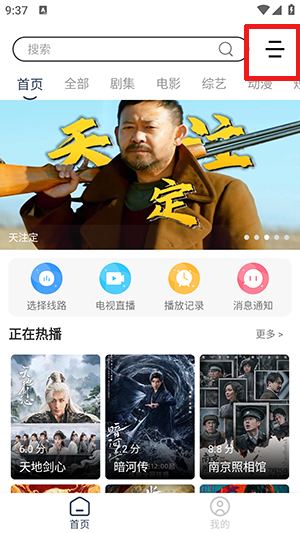 2、点击右上角的红框所标位置,即可显示全部影视源。