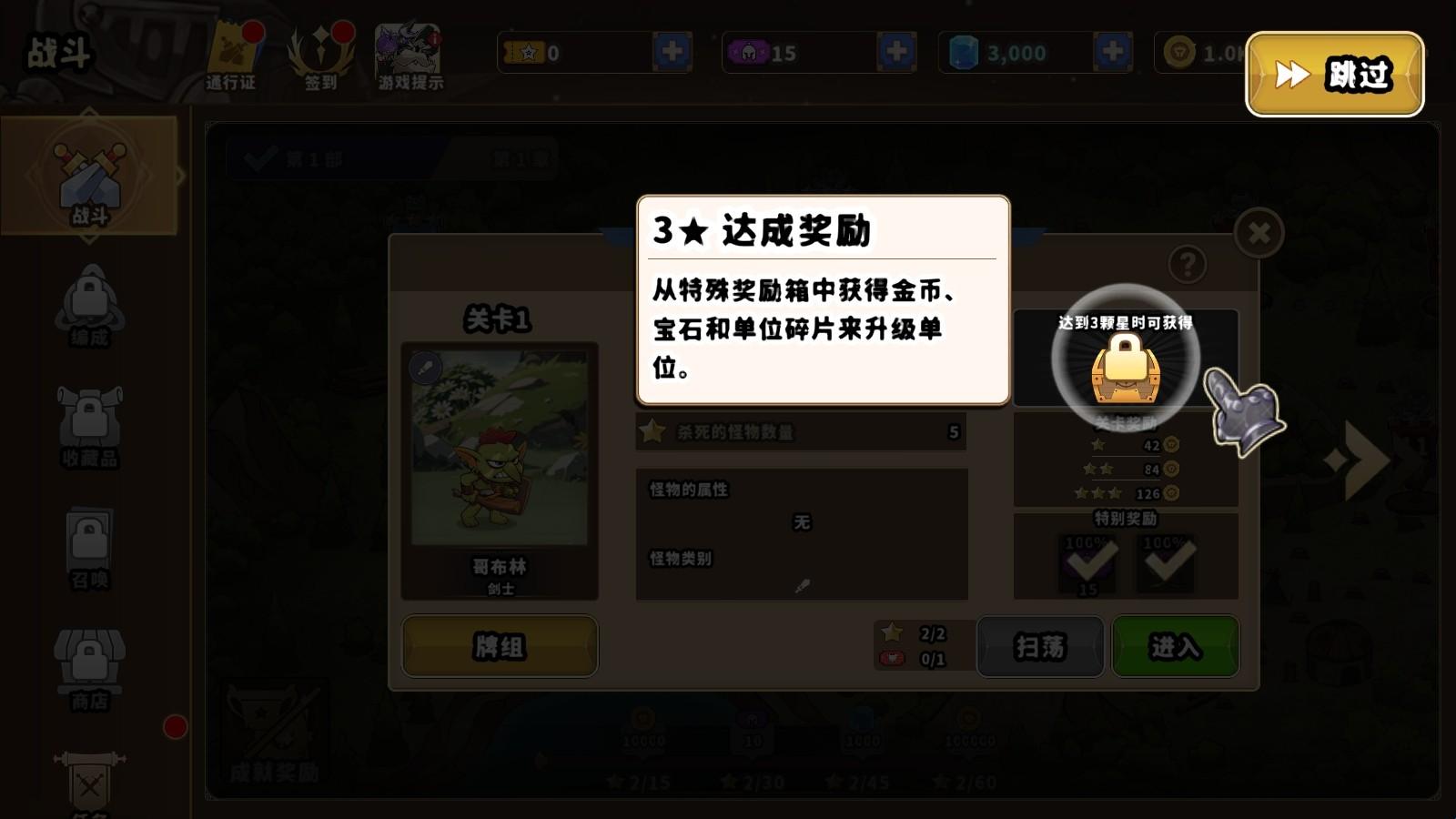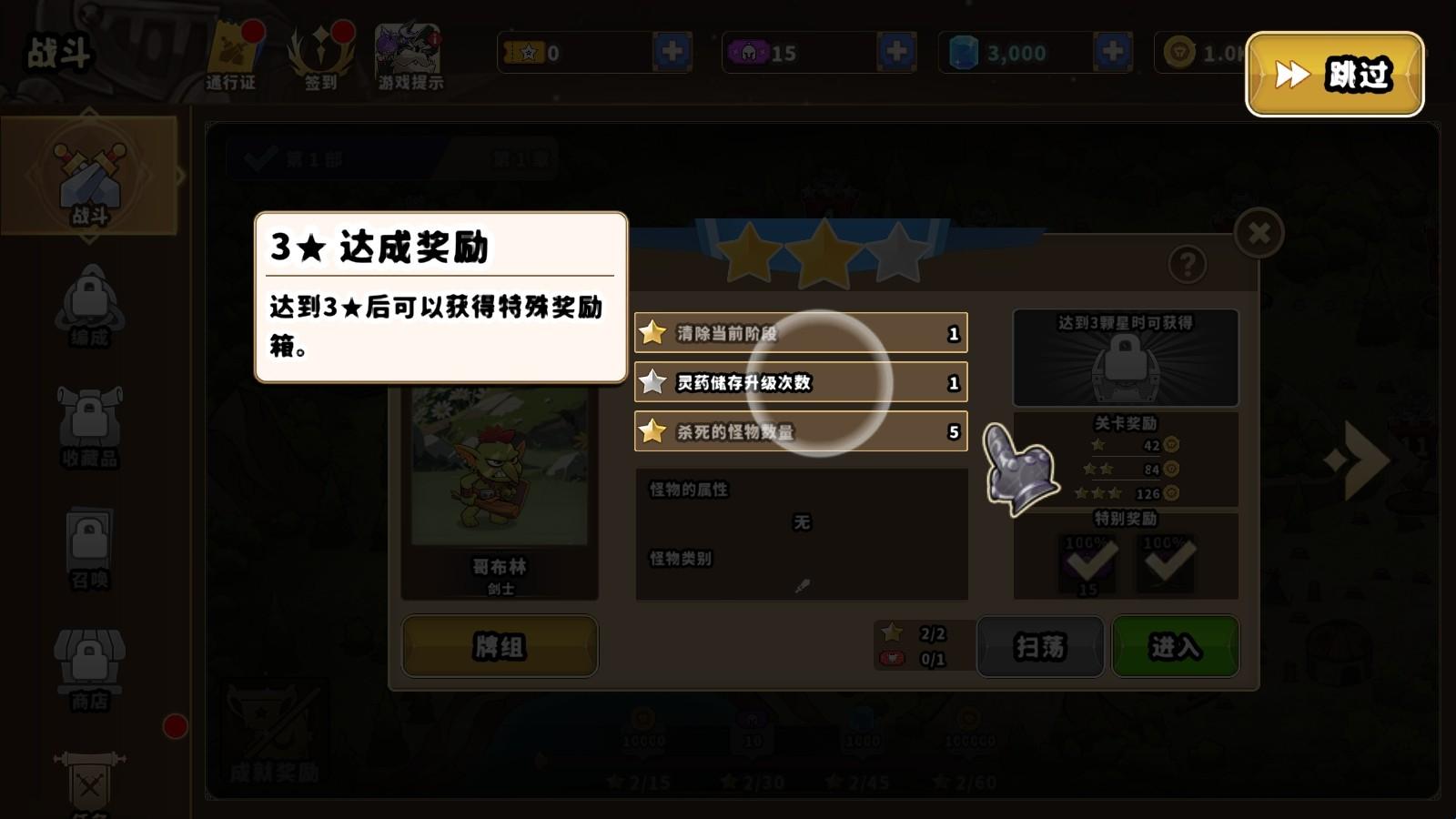 4、满足3个条件即可获得3星,达到3星后会有特别奖励。