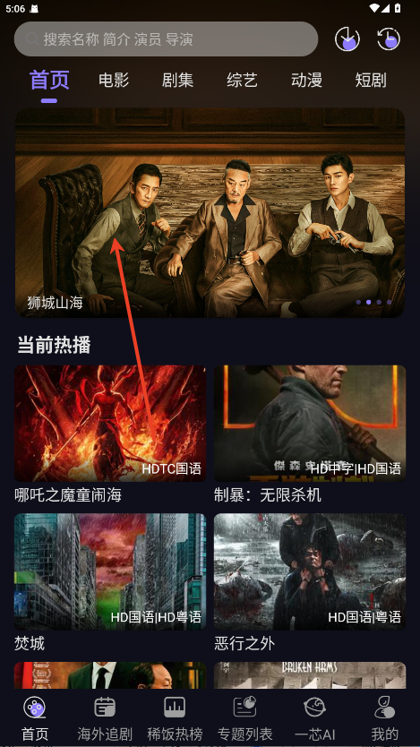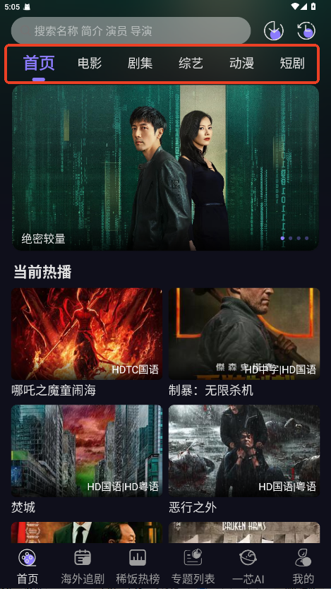 1.打开稀饭影视,直击首页或快速切换分类,立即选中您想看的电影、电视剧、综艺或动漫内容。
