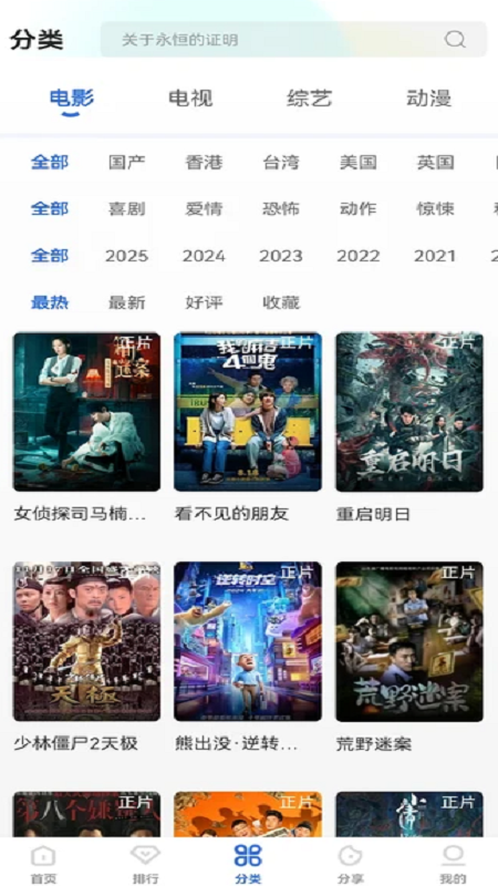 分类: 在分类页面中提供了电影、电视、综艺和动漫的类别,及时了解各类类别的信息。