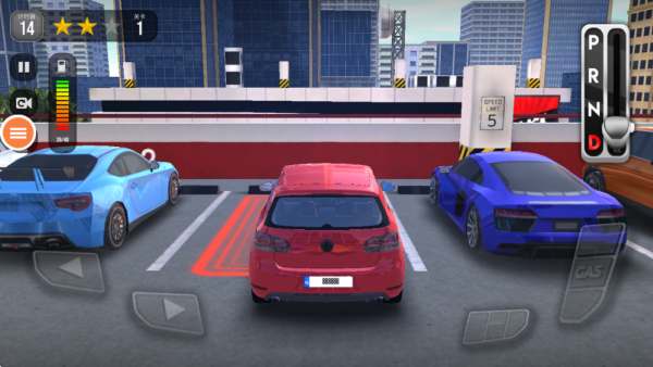 5、如下图,第一个关卡任务为停车挑战,你需要将汽车完美停放到指定的停车位才能闯关。
