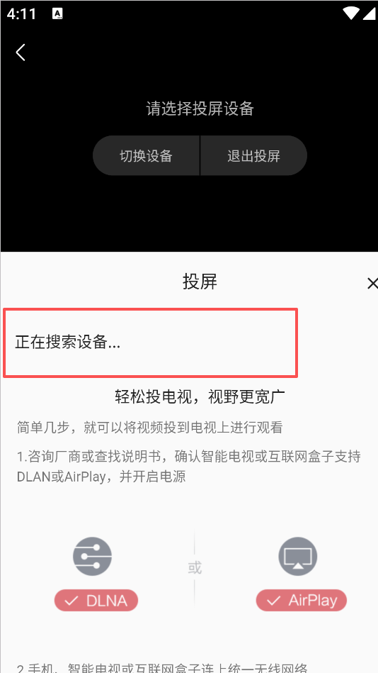 1、首先将手机与投屏设备连接至同一网络下,然后在app内选择你要投屏的电视剧、电影、综艺等