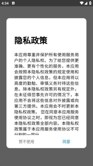 1、下载安装软件后打开,弹出隐私政策,点击同意。