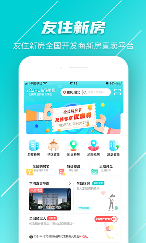 友住新房app是一款非常好用的手机租房购房软件,在线查找全国所有新房,根据用户需求筛选项目优惠信息、特价房、案场活动等开发商官方发布的信息,真实、即时、透明、高效,感兴趣的小伙伴们快点来下载吧。