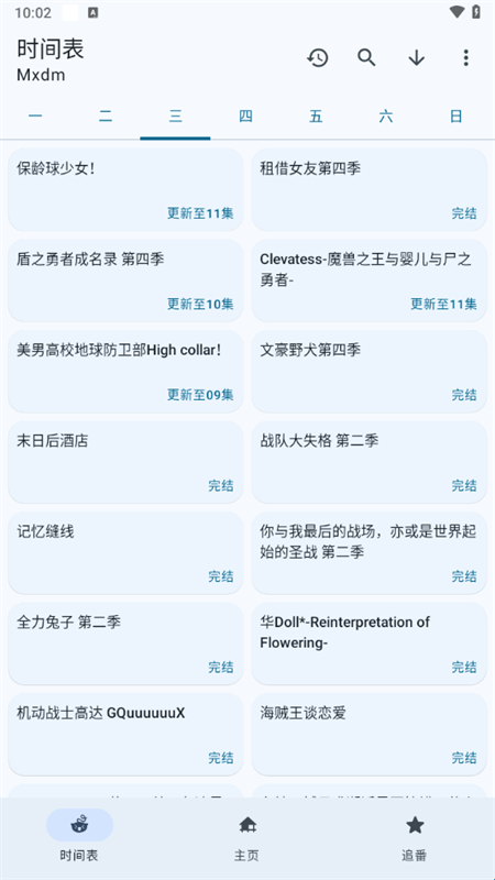 2、在时间表界面下,我们能够看到每天更新的动漫作品。