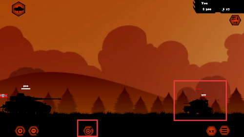 3、启动瞄准系统锁定敌方目标,点击攻击按钮发起进攻,同时留意自身血量与敌方火力,及时转移阵地。