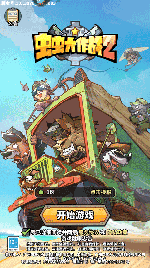 1、运行游戏后,在标题界面点亮“我已详细阅读并同意服务协议和隐私政策”后找到并点击“开始游戏”选项;