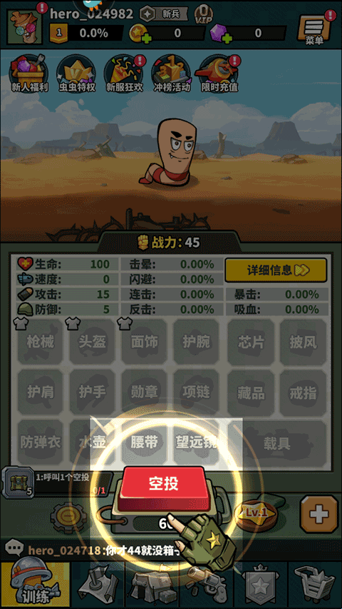 5、然后,在点击空投按钮后就会获得一定的资源和装备。