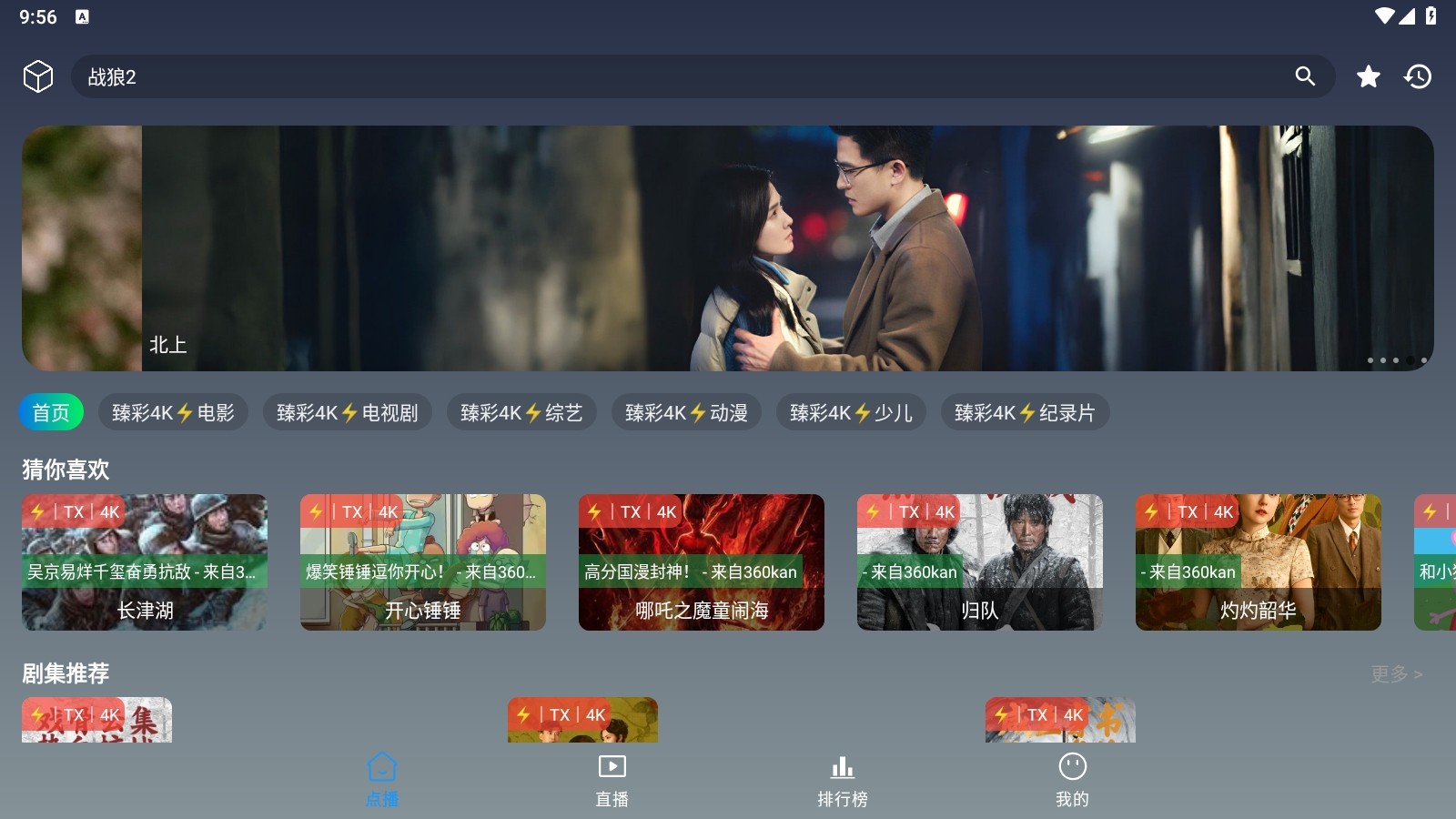 畅视4k官方正版是一款手机影视播放盒子,它里面为用户们准备了海量的影视资源,丰富的影视题材,涵盖了多方面影视内容,其中有电影,电视剧,综艺,动漫等等,并且还有老少皆宜的经典电视剧校园爱情片和打仗片,可以为家里的老人手机上下载一个,闲暇之余可以打开看看。