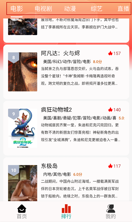 2、在“排行榜”页面中还有多种影视剧分类的榜单可供参考。