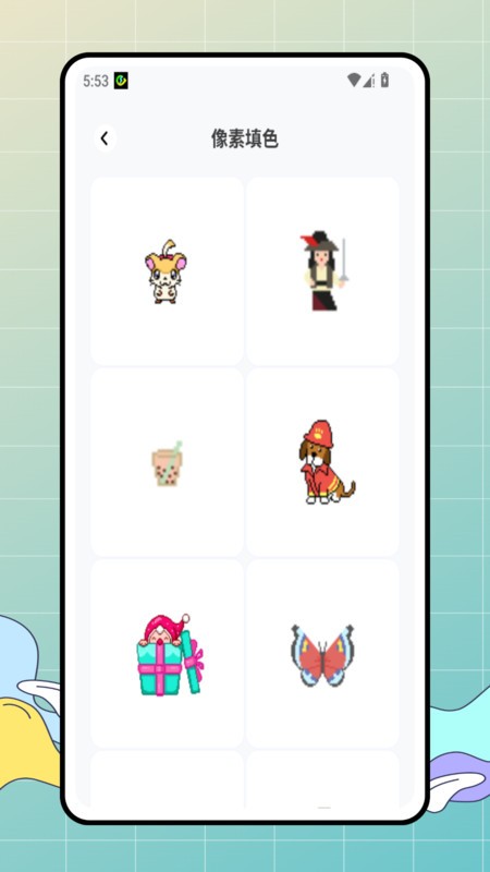 3、像素涂色功能通过数字填色的方式,让用户在轻松完成作品的同时,还能培养色彩感知。