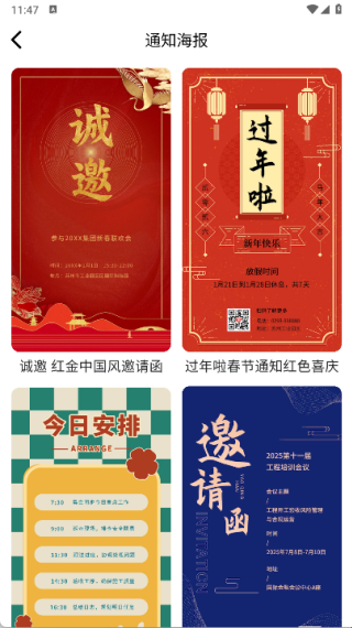3、点击通知海报,可以看到很多精彩的模板,可以随时拿来使用;