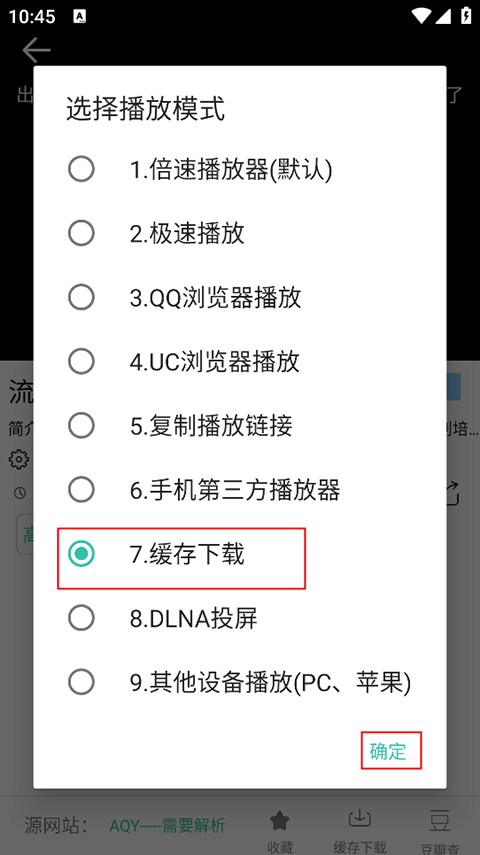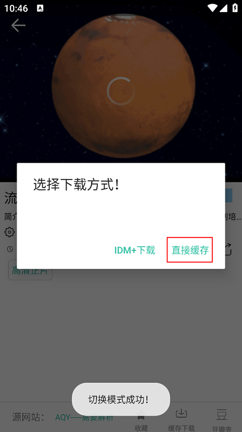 5、在弹出的选择下载方式页面当中点击“直接缓存”按钮;