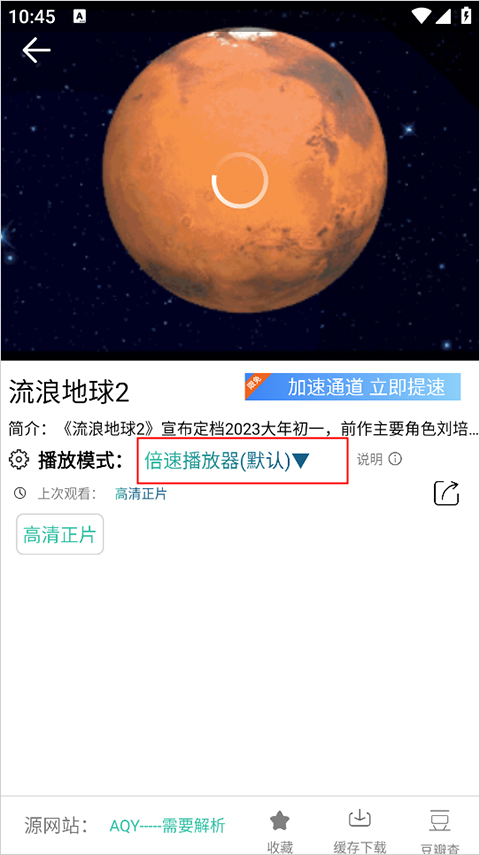 2、进入到该视频详情页面,在页面上方选择一个资源进入;