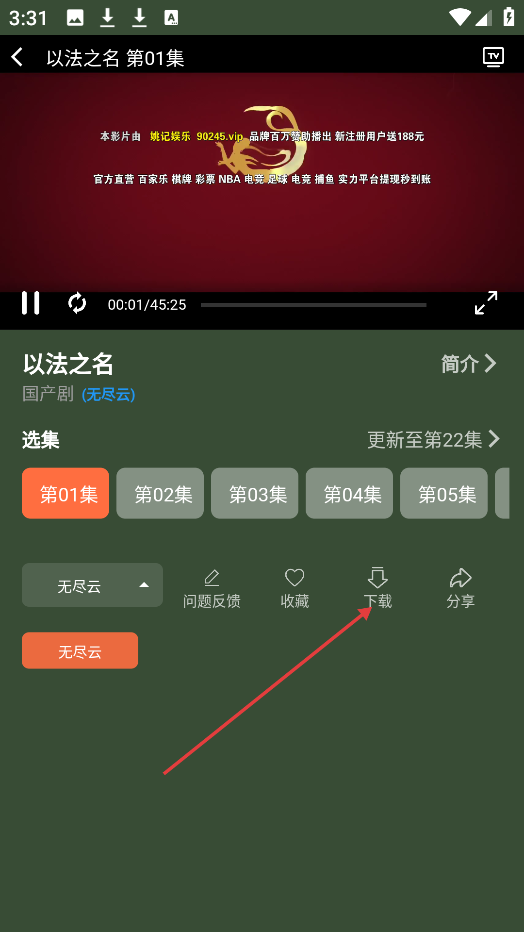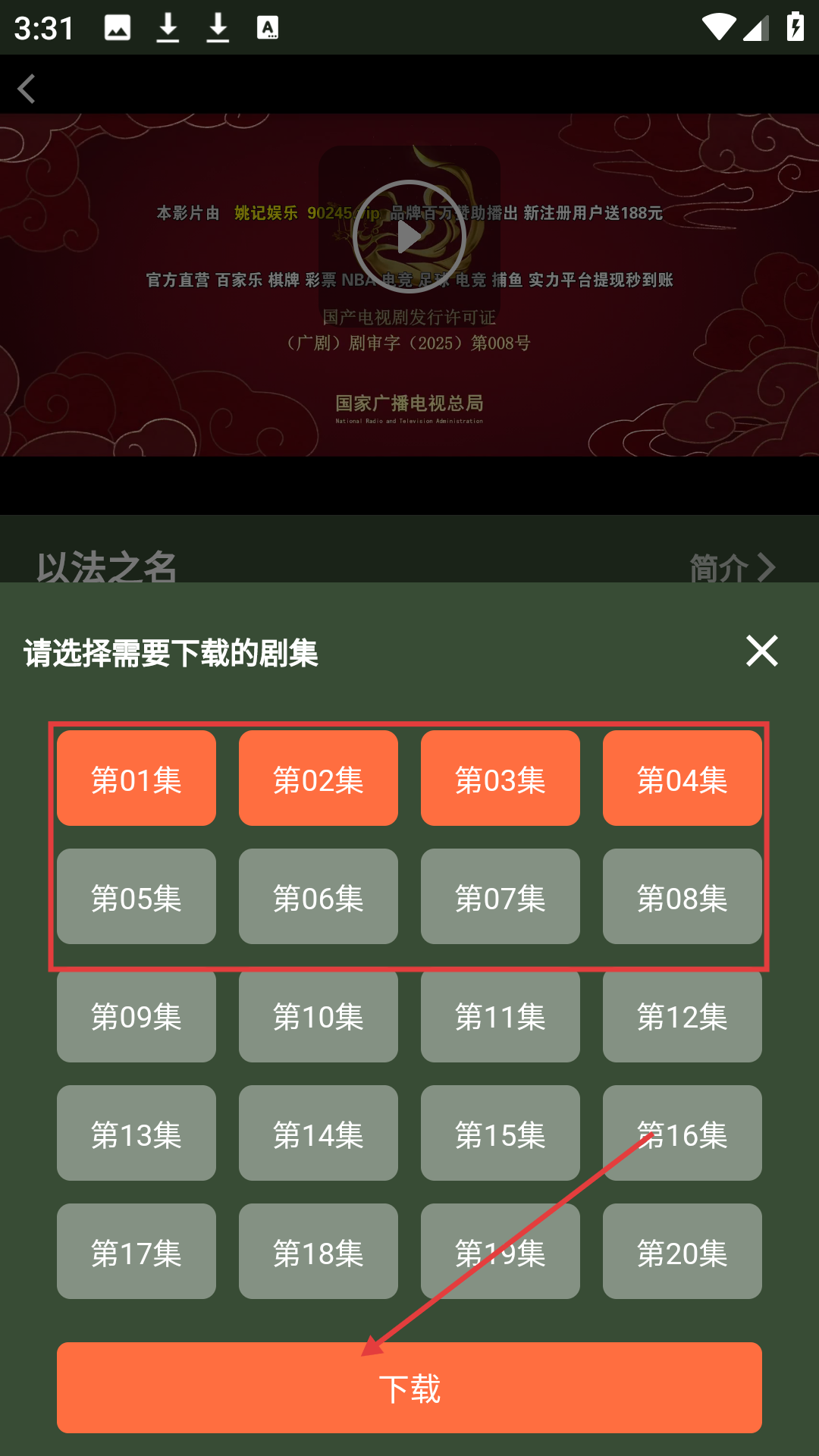 4、选择你要下载的剧集点击即可选中,再点击下方下载;
