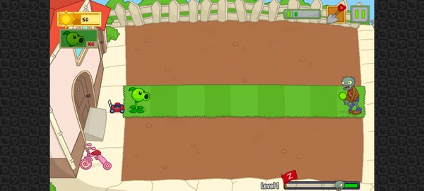 5、这里以第一关为例,玩家需通过收集阳光种植植物来防御进攻的僵尸;