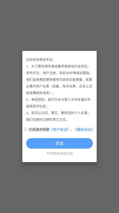 1、在本站下载安装游折宝app,点击同意进入首页;