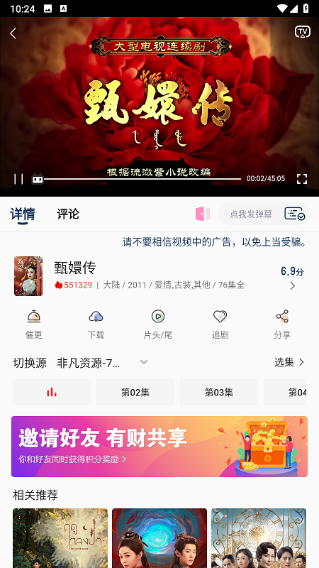 1.支持离线下载功能,将喜欢的影视作品下载到本地,随时随地观看。