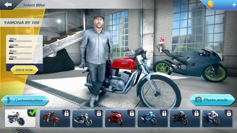 1、游戏中拥有多种炫酷的摩托车供玩家自由选择,让玩家可以根据自己的喜好进行挑选。