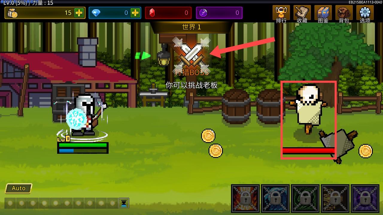 2、游戏里,玩家将方框内敌人消灭五个后,点击指示位置即可挑战BOSS。