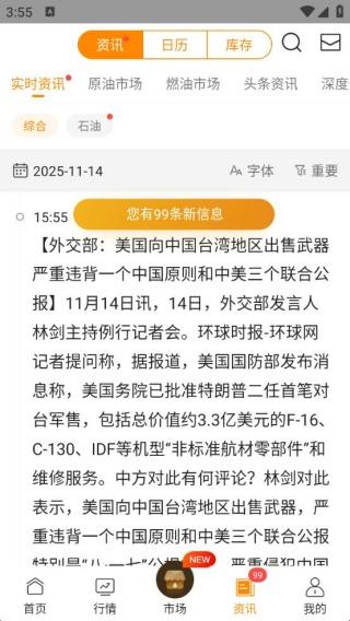 原油app是一款可以咨询原油行业的咨询应用软件。软件首页平台上面实时记录着原油的国际行情和价格变动,可以让用户快速地掌握到咨询服务,也可以实时监控市场的需求还有很多行情趋势图。软件首页上面每日都有推送最新的资讯内容,供用户阅读。