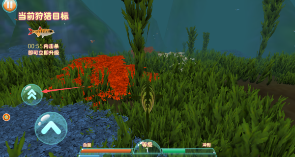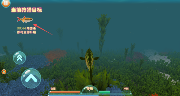 3、每个关卡设有特定狩猎目标(如10只小丑鱼),必须在90秒内完成才可获得星级评价并解锁进化权限。
