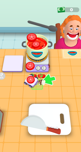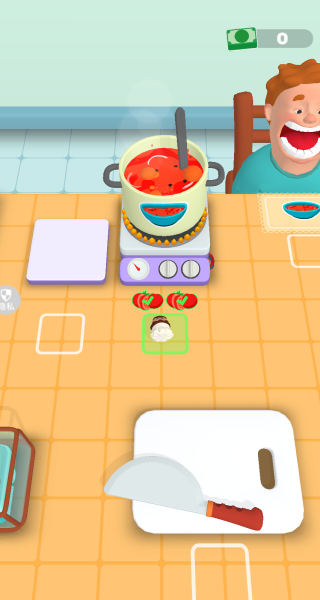 4、重复上述流程服务下一位顾客,当连续完美制作三份番茄汤后会触发顾客的惊喜表情动画。