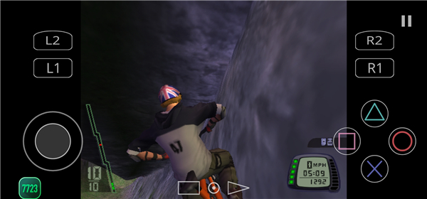 游戏以下山竞速为核心,在高速下坡中,利用跳跃坡道做出空中特技是得分和制胜关键。