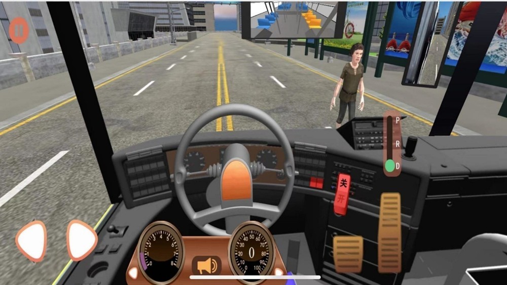 2、按指定路线行驶,观察路况与信号灯,在每个站台精准停靠,待乘客上下完毕后关闭车门,继续出发。