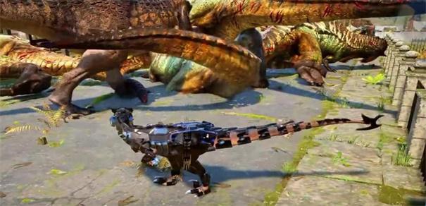 1、玩家可以探索各种区域,在不同的场景中和恐龙战斗。