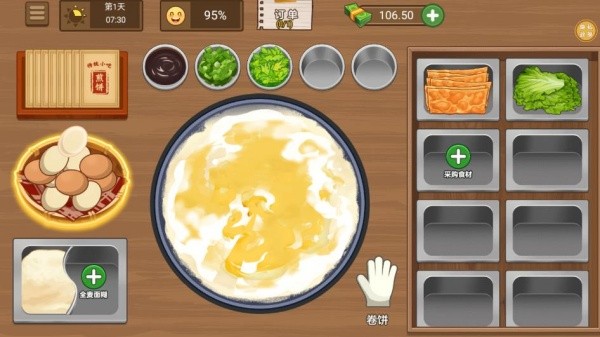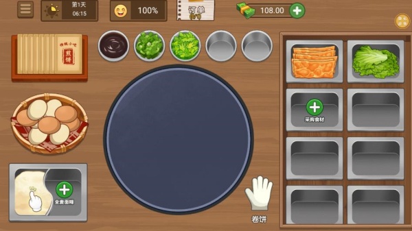 2、赚取金币购买更高级的厨具(如自动摊饼机)、解锁新配料(如鸡排、辣条),提升出餐效率和质量。