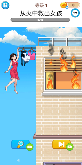 2、如下图,在第一个关卡中,玩家的任务是要帮助女孩成功逃离火灾现场。