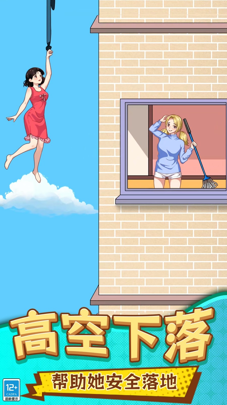 3、从画面右侧找寻可以当做绳索的物品,找到后将其拖拽到左侧,帮助女孩朝着楼栋底部下降。