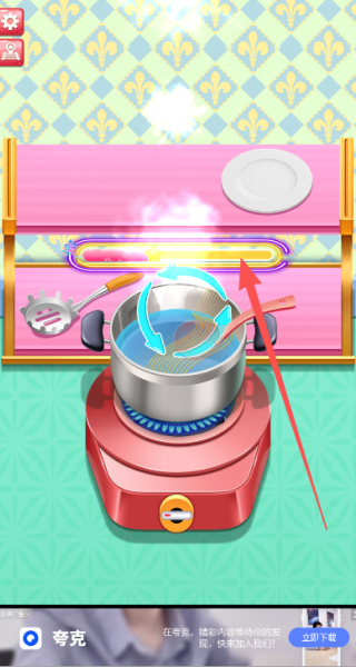 3、进入烹饪环节后需按照提示顺序使用厨具,错误操作会触发系统纠正。