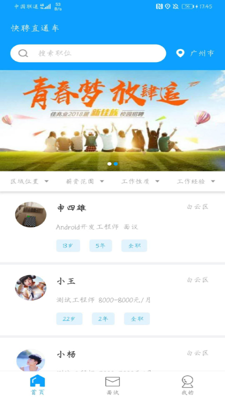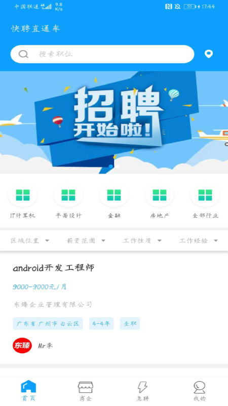 这里有很多行业的招聘信息,你可以选择自己专业的或者感兴趣的公司投简历,还可以和HR在线沟通。