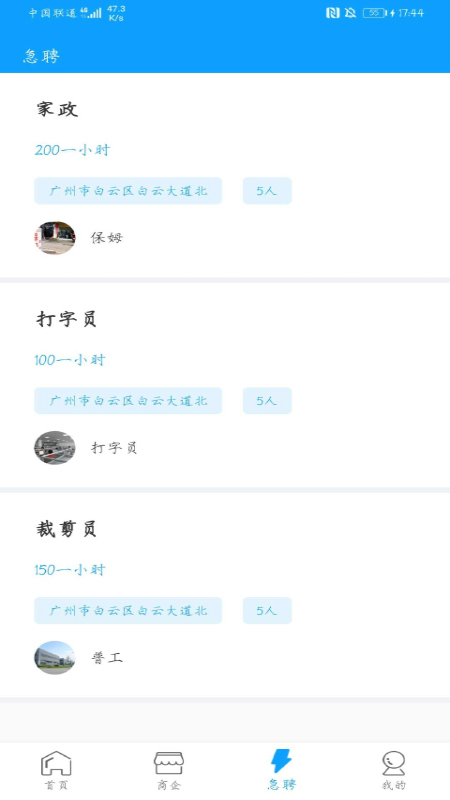 3、用户能选择自己喜欢的兼职进行查看,各种类型的兼职都有;