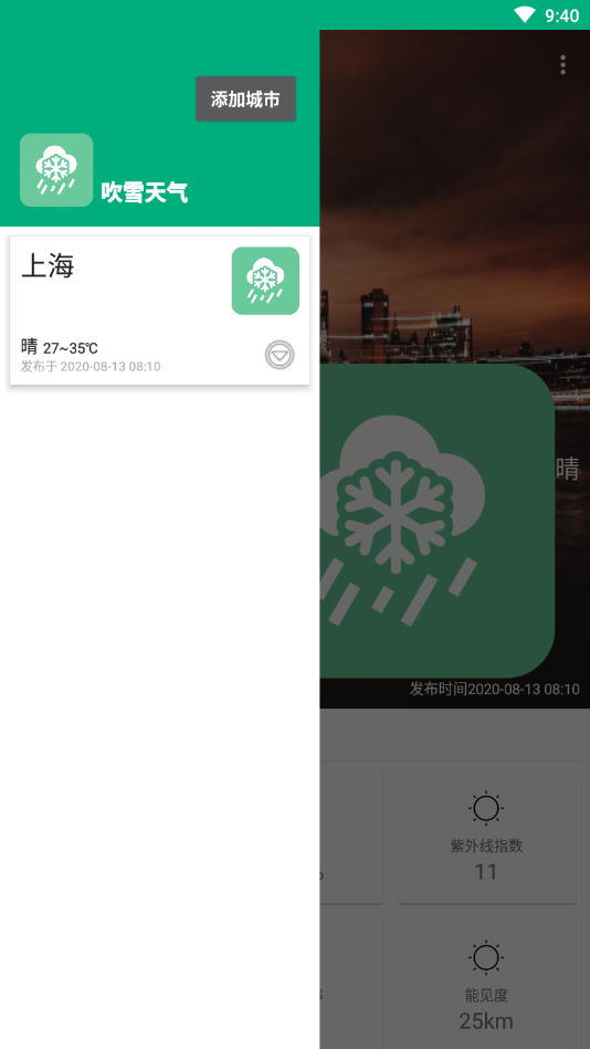 2、语音播报功能,全国每个城市的天气情况都可以查到,还支持同时关注多个城市,还有很多生活指数;
