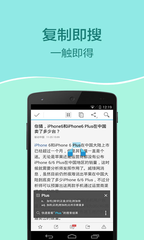 【智能搜索】非常的节省流量,羽量级的界面,功能一目了然。