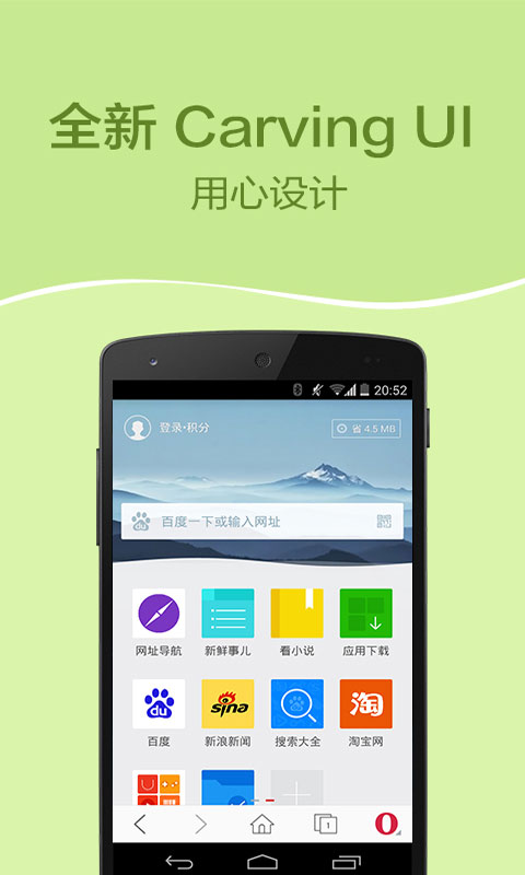 2、【超省流量】独有流量压缩引擎Opera Turbo2.0,节省上网流量超过80%;
