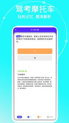 驾考摩托车APP可以进行模拟考试,主打的是摩托车的驾考知识,题目都是专业的,确保题目的精准、权威和全面。