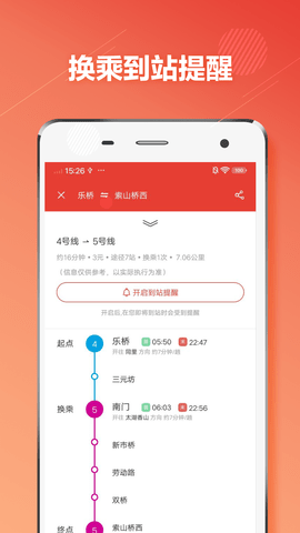 到站提醒:可以开启地铁到站提醒功能,用户就能及时获得到站提醒信息