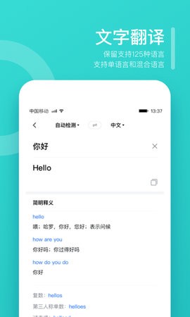 翻译狗支持英语、韩语、德语、法语、日语等125种语言,只需要在翻译时选择好原文语言和目标语言,就能得到想要的译文结果。