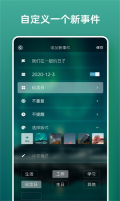 2、可以快速自定义一个新的事件,添加到备忘录,还能添加其他描述;