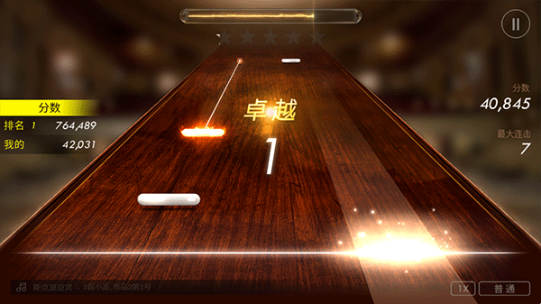 4、当有一串闪光的音符出现时,跟随音符线性方向滑动屏幕;