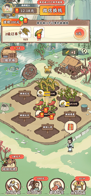 7、慢慢解锁更多的土地,种植更多的农作物来提高收入吧!