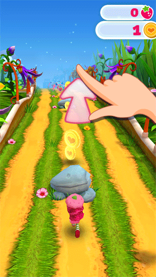 2、当遇到石头时,玩家可以上滑跳过障碍;