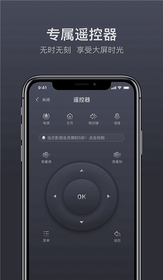 【热门影视】数据同步OS,观看的同时你也可以浏览其他影视详情。【工具箱】新增远程看家功能,在外你也可以实时观察家中设备状态;新增留言板功能,手机留言,设备上展示;支持电视截屏、一键清理、儿童模式、音箱模式切换、一键关机、一键打开应用等。【遥控器】侧边键也在手机遥控器上线啦!