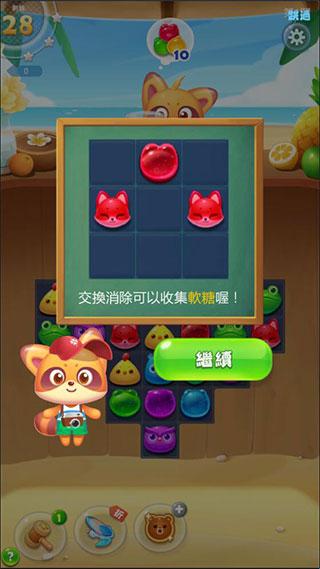 1. 当我们正式进入关卡的时候,游戏会给我们一些提示。我们可以通过交换和消除它们来收集软糖豆。这些软糖是我们需要收集在这个级别的目标