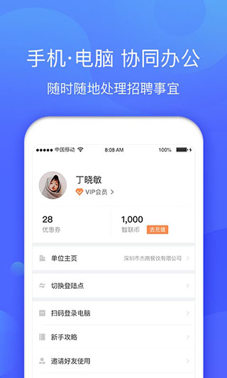还在为找工作而烦恼吗,还在为下个月的房租为难吗,还在为找不到工作而无颜面对家人吗,快来下载这款智联企业版app吧,不仅能找工作,还能帮你快速找到员工哦,高效的算法,精准的推送,帮助你最快速度找到合适的工作或者员工,非常好用哦